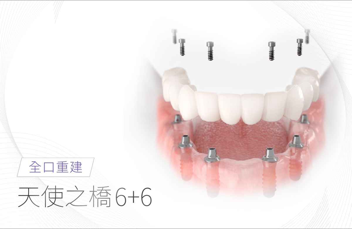 6顆植體+牙冠,搭配額外6顆牙橋式牙冠