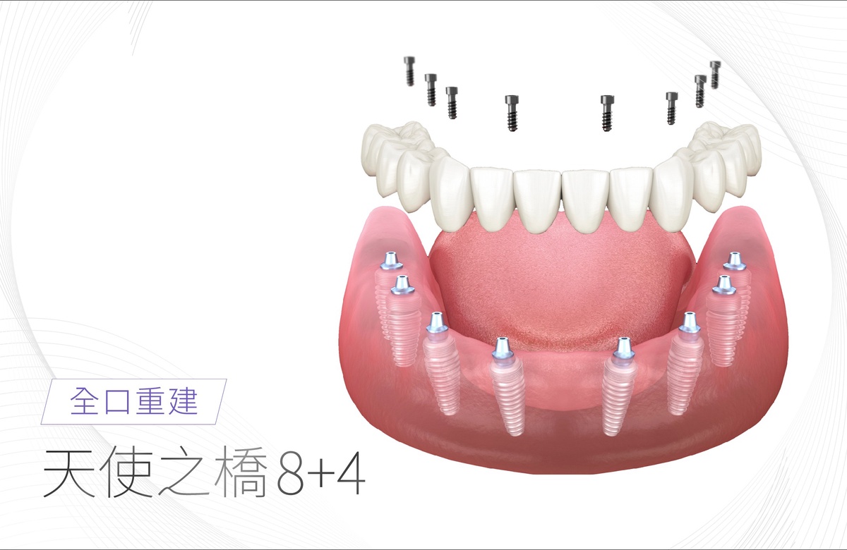 8顆植牙牙冠,搭配額外4顆牙橋式牙冠