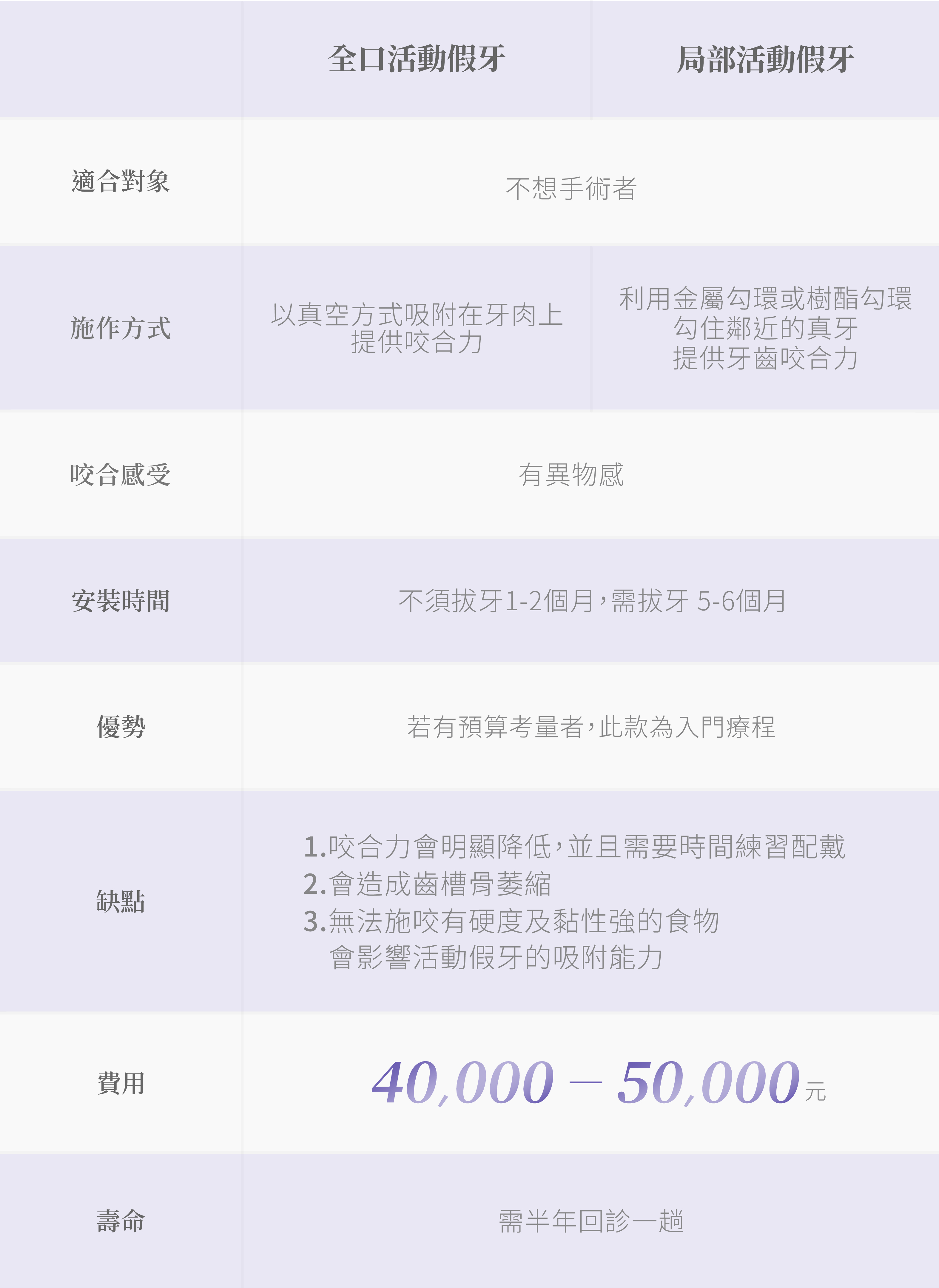 5.使用年限短:使用年限約5年,平均壽命較全口重建壽命短。