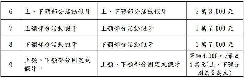 • 上、下顎部分活動假牙:最高補助金額3萬3千元下顎部分活動假牙:最高補助金額1萬7千元