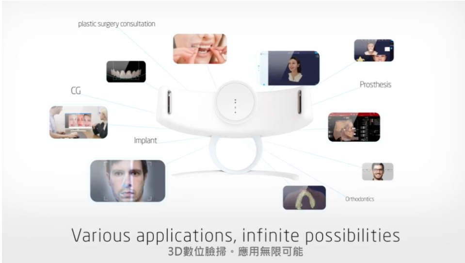 身為新時代牙科X光先行者,瑞麗公司研發的面部掃描模擬機,配置9組高精度光學與紅外線深度鏡頭,多鏡頭同時面部掃描,迅速擷取「最自然微笑」,將能在電腦中呈現數位人像。接著,藉由3D模擬術後對比,進行視覺化溝通,便能在對術後結果很有信心的情況下,建立專屬療程,讓消費者和醫生共同看見美麗願景。
